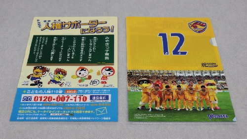 特設ブースではアンパンマンの作者であるやなせたかしさんデザインの人権イメージキャラクター「人KENまもる君」、「人KENあゆみちゃん」がベガルタ仙台とコラボしたオリジナルクリアファイルとカレンダーカードを配布します。さらに、人権クイズに挑戦してくださった方には、同じく「人KENまもる君」のポーチを配布しますので、スタジアムへぜひお越しください(クリアファイルとカレンダーカード、ポーチは、数に限りがありますので、なくなり次第終了となります)
