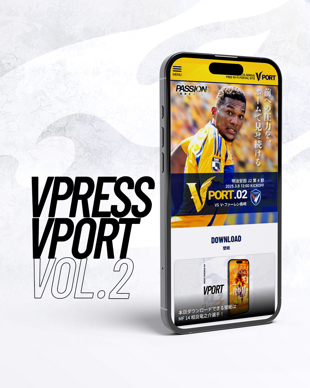 ベガルタ仙台がホームゲームごとに公開しているLPでは、キューアンドエースタジアムみやぎでのホームゲーム開催時に限り、前日18:00にホームゲームコンテンツVPORTを追加公開しています。VPORTでは、マッチデープログラム、壁紙DLなどがご利用いただけます。3月8日(土)開催、明治安田J2リーグ 第4節 V・ファーレン長崎戦でDLできる壁紙はMF 14 相良竜之介選手です。ぜひご利用ください。