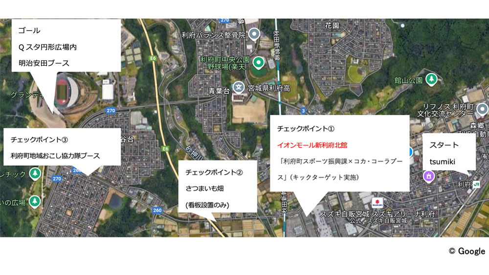 ベガルタ仙台はホームゲーム開催地である利府町の全面協力のもと、「RIFU×VEGAウォークsupported by明治安田」を実施いたします。JR利府駅をスタートしてゴールのキューアンドエースタジアムみやぎ(Qスタ)までを歩くことで「利府」の魅力を体感していただくとともに、参加者自身の健康づくりを応援していくウォーキングプロジェクトです。
