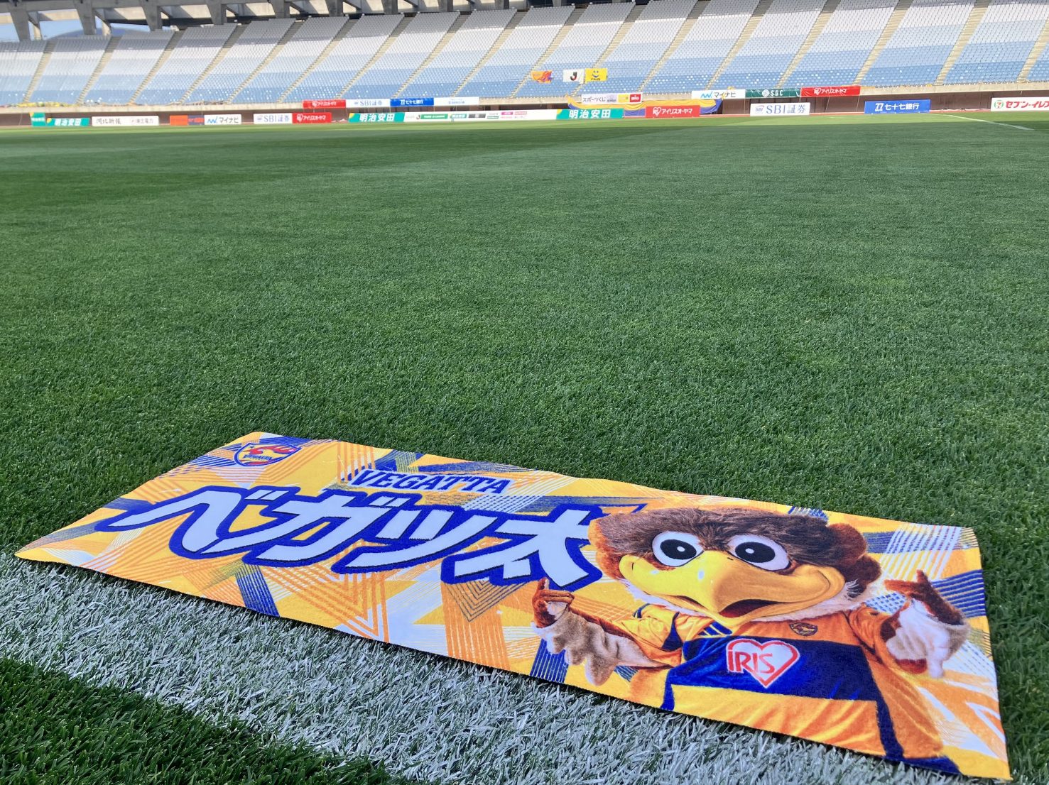 今節よりプレイヤーズフェイスタオルにベガッ太が追加されます★選手のフェイスタオルと並べるのも良し◎