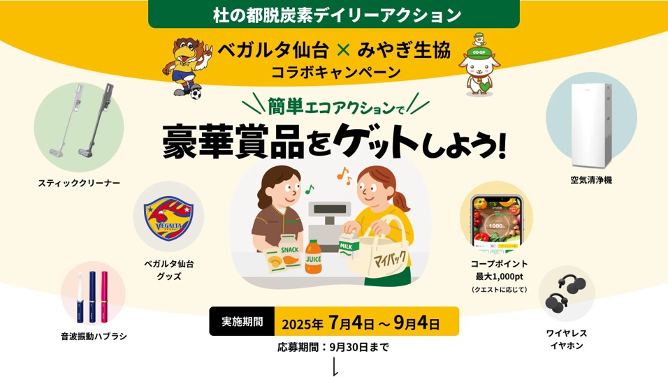 みやぎ生活協同組合、NTT東日本、仙台市と「杜の都脱炭素デイリーアクション」開始のお知らせ