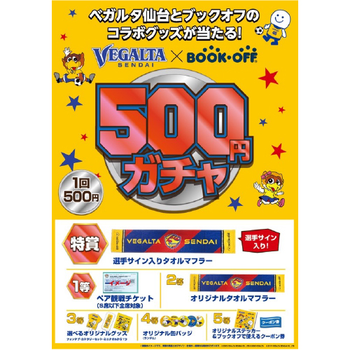 仙台市内のブックオフでお買い物の際にレジでベガルタ仙台グッズをご提示いただくと「書籍、洋服、スポーツウェア」がなんと10%OFF。