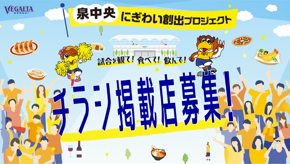 ホームゲーム開催日の泉中央エリアをより楽しく、より盛り上げるために、ベガルタ仙台と地域の飲食店舗などが一体となり、スポーツを通じた地域経済活性化を目的とした「泉中央にぎわい創出Project」。