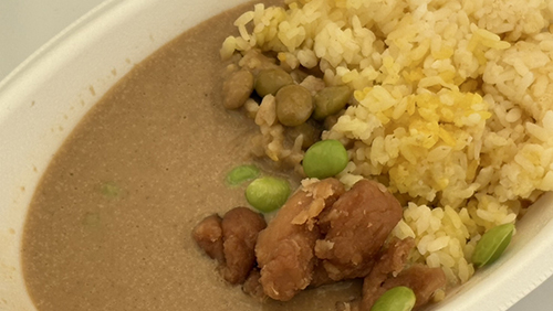 宮城県産の枝豆を使ったピリ辛グリーンカレーをお得にご提供します。カレーを食べてアツく観戦しましょう。
