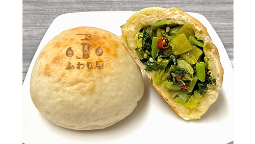 長野県産の野沢菜漬けを使用した、おやきの代表商品です。ごま油と唐辛子が香る、大人な味付けに仕上げています。