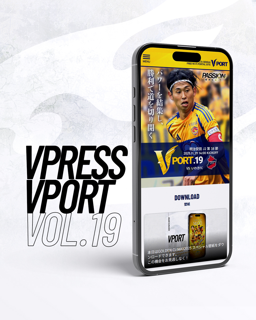 また試合当日、同Wi-Fiに接続すると、ベガルタ仙台ホームゲームLPの追加コンテンツ「VPORT」が閲覧いただけます。マッチデープログラム、Wi-Fi利用者限定の壁紙ダウンロードなどご利用いただけます。