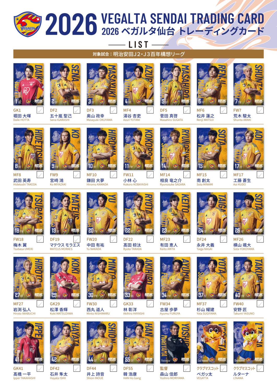 明治安田J2・J3百年構想リーグ ホームゲーム 「ベガルタ仙台トレーディングカード2026」プレゼント企画実施のお知らせ