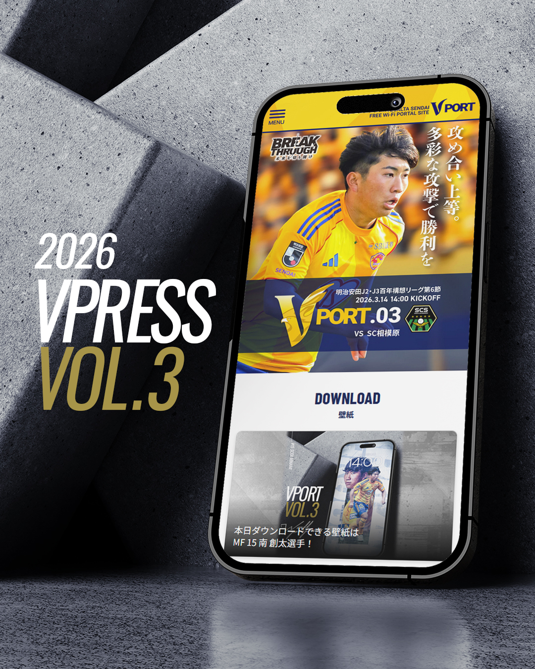 また試合当日、同Wi-Fiに接続すると、ベガルタ仙台ホームゲームLPの追加コンテンツ「VPORT」が閲覧いただけます。マッチデープログラム、Wi-Fi利用者限定の壁紙ダウンロードなどご利用いただけます。