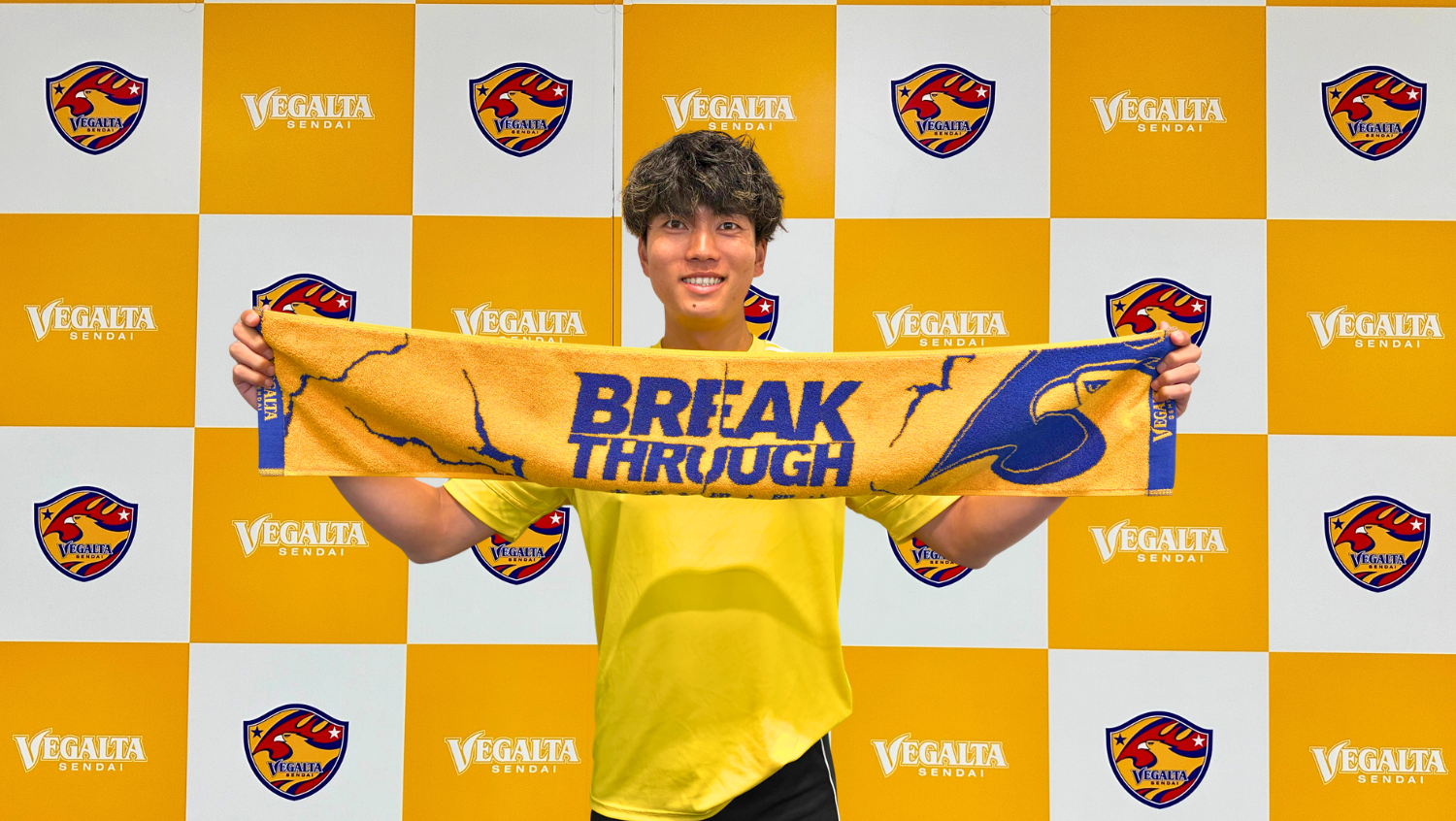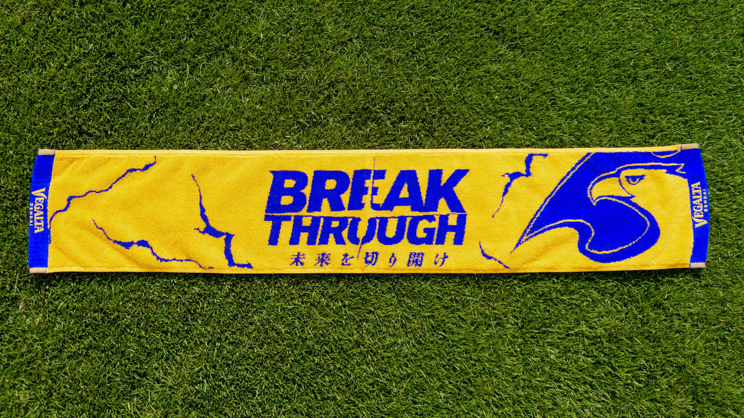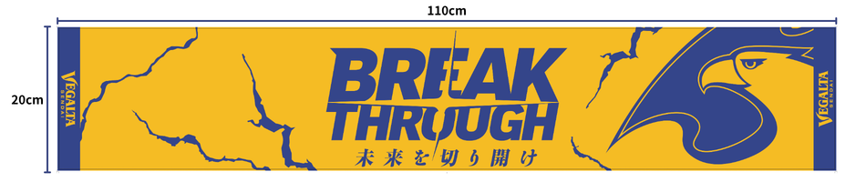 ベガルタゴールドの生地にチームスローガンを力強く表現したデザインのタオルマフラーです。