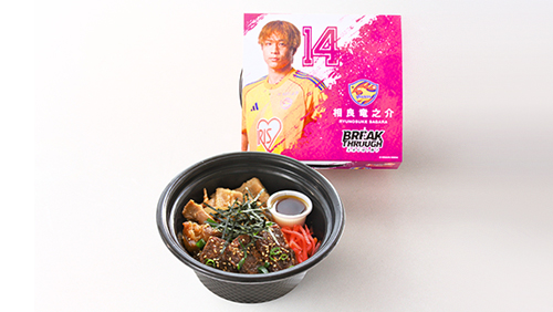 【販売商品名】相良竜之介選手コラボ弁当「ピッチを切り裂く!3種盛り焼肉カットイン弁当」