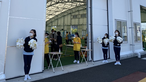 まずは、ベガルタチアリーダーズとウォーミングアップのダンス。覚えたダンスを、みんな上手に踊っています。