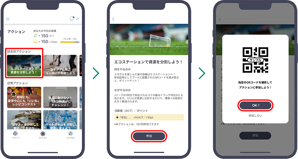 各クラブのファン・サポーターやホームタウン在住の地域の方々が、スマホアプリを活用することで、気候アクションへの参加と継続がしやすくなるかを検証します。