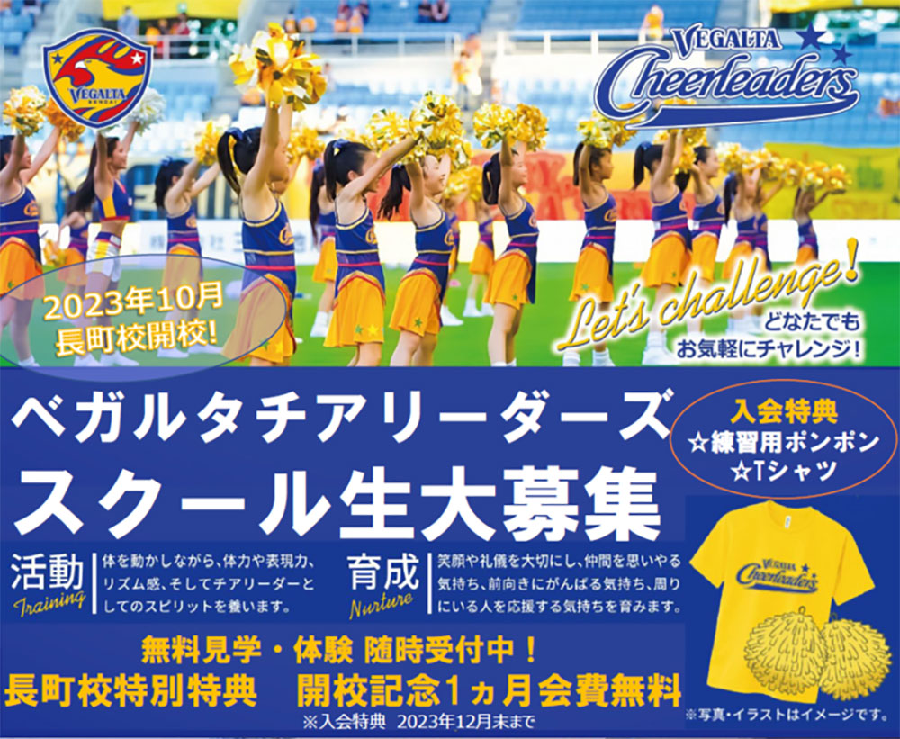 ベガルタ仙台では、2023年10月にベガルタチアリーダーズスクール長町校を新規開講いたします。