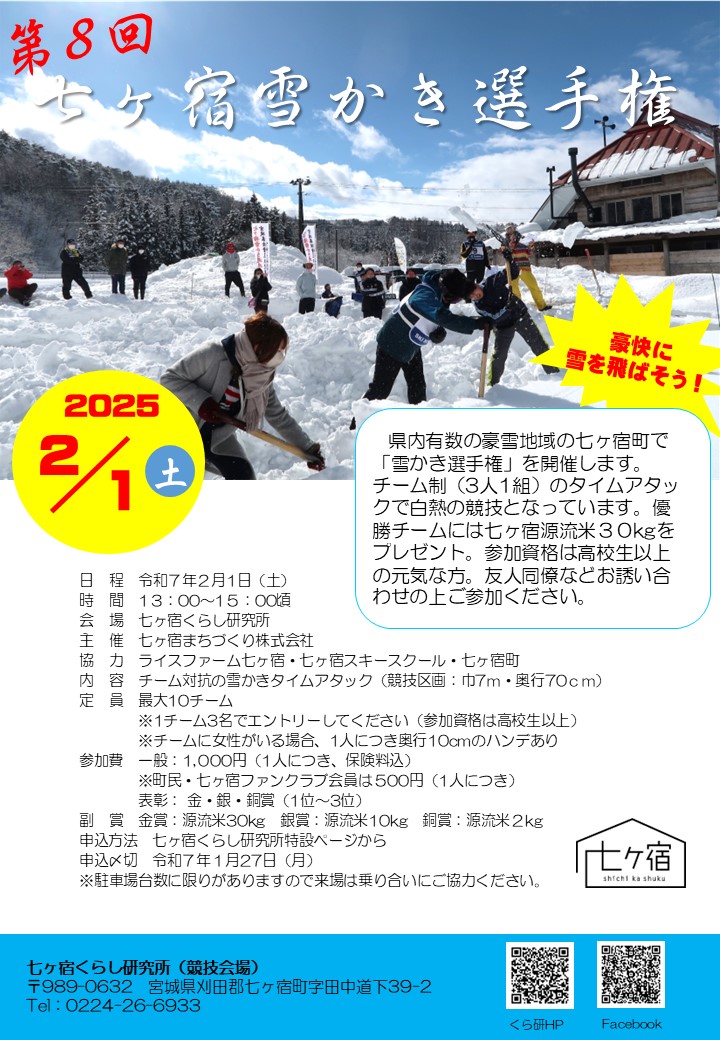 七ヶ宿雪かき選手権が2月1日(土)に開催されます。