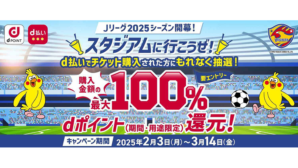 株式会社ベガルタ仙台は、株式会社NTTドコモと締結した「べガルタ仙台」を中心とした地域経済活性化に関する協業契約に基づき「Jリーグ2025シーズン開幕!スタジアムに行こうぜ!キャンペーン」を実施いたします。