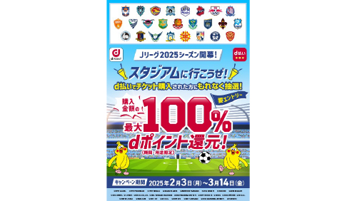 キャンペーン期間中、対象クラブのホーム戦チケット購入の際にd払い決済を行った方へ抽選でdポイントを還元!