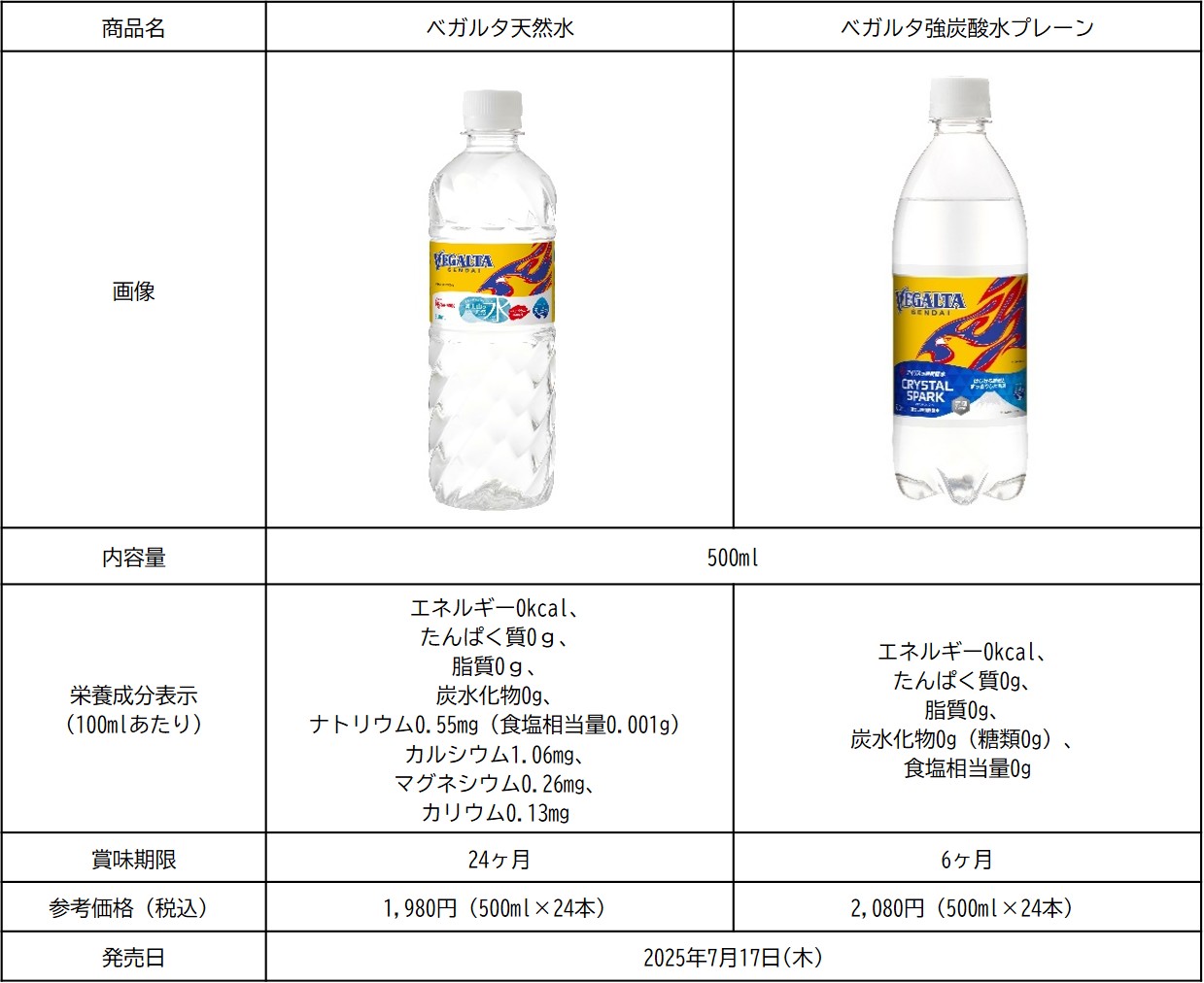 「ベガルタ天然水」「ベガルタ強炭酸水」について