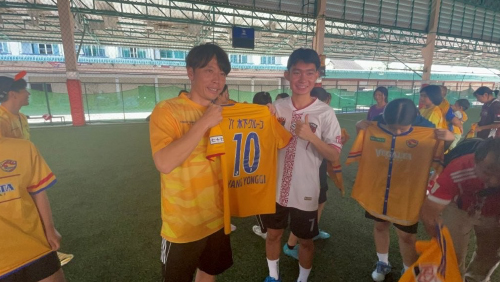 25年11月中旬、富田晋伍(3年連続参加)クラブコミュニケーターと梁勇基(初参加)クラブコーディネーター含めた5名のベガルタスタッフがタイに渡りました。そこには、本年もクラウドファンディングを通じて本活動に寄付をいただいたサポーターの千田颯真さん、個人協賛いただいた富樫耕一さん、サッカーを通じて東南アジアの子どもたちを支援している松下裕二さん3名のボランティアが2年連続でご参加いただき、今年からは、アフリカや東南アジアなどで国際協力、人道・開発支援に長年従事されている五十嵐和代さんにも新たにボランティア参加いただきました。