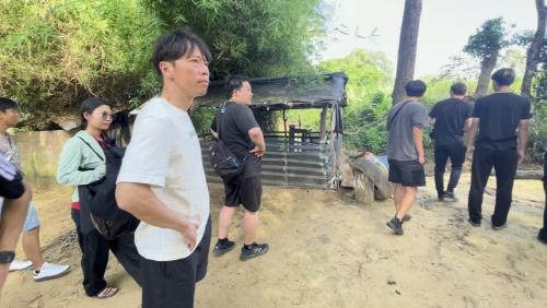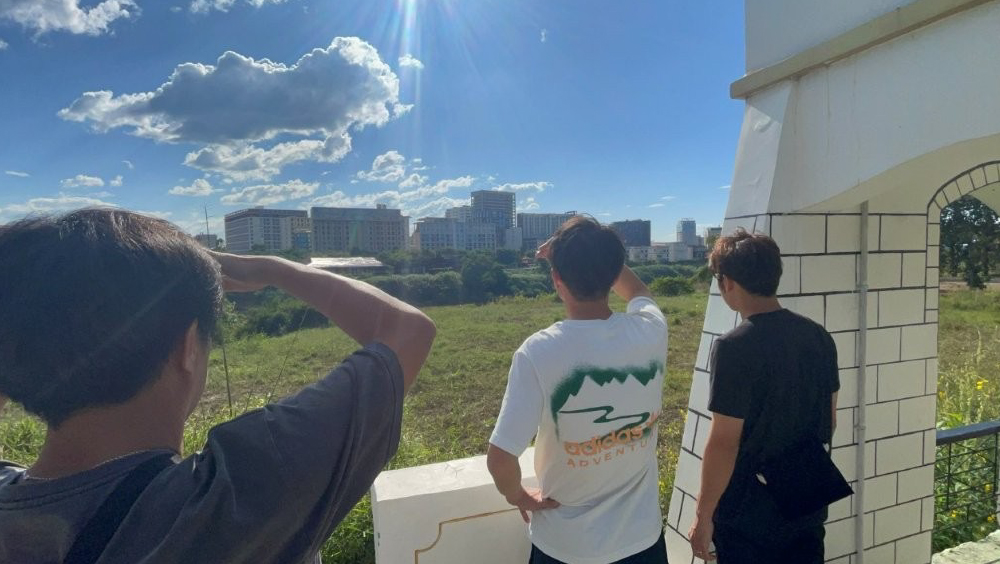 コミュニティ訪問後は、タイとミャンマーの国境付近を視察しました。内戦が続く中今でもミャンマーから川を越えて、タイに続々と難民が押し寄せてくる現実に変わりはないそうです。また、この国境エリアは、日本でもニュースとなっている特殊詐欺の拠点と思わしき建創な構築物がそびえたつ場所でもありました。周辺は川がせせらぎのどかな自然を感じさせる雰囲気の中、異空間を感じさせる佇まいには、闇の深さを感じざるを得ませんでした。