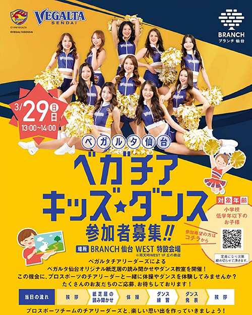 ブロンズパートナーの大和リース株式会社さまが運営するブランチ仙台にて、3月29日(日)に「ベガチアキッズダンス」が開催されます。