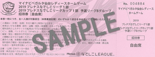 先着3,500名を対象に2019シーズンのマイナビベガルタ仙台レディースホームゲームを観戦できる自由席共通招待券をプレゼント。ホーム開幕戦を観れば、もう1試合観ることができる!!まずは、開幕戦を観に行こう!!