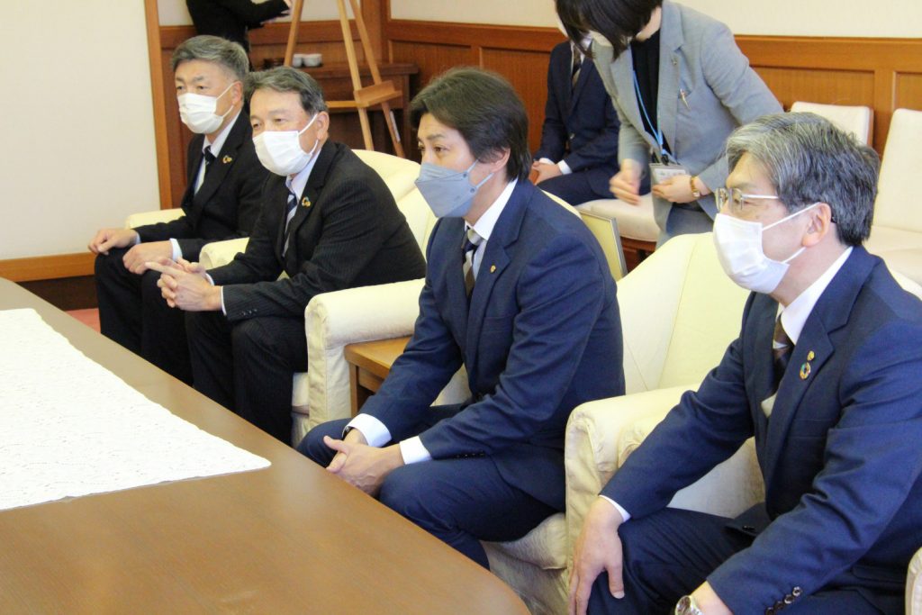 1月6日(木)、代表取締役社長 佐々木知廣、監督 原崎政人、取締役 清水義明、取締役 北畠泰之が宮城県を表敬訪問いたしました。