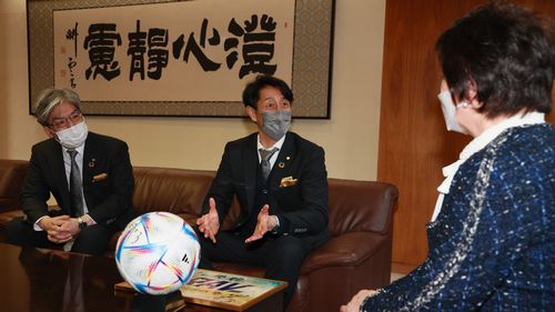 1月6日(金)、代表取締役社長 佐々木知廣、監督 伊藤彰、取締役 清水義明、取締役 北畠泰之が仙台市を表敬訪問いたしました。