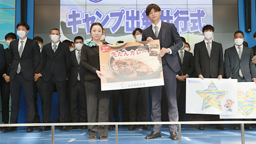 1月13日(金)、ベガルタ仙台ホームタウン協議会およびベガルタ仙台・市民後援会主催によるベガルタ仙台キャンプ出発壮行式が仙台空港で行われました。今年は3年ぶりに式を一般公開で行えたこともあり、平日の朝早くにもかかわらず約300人のファン・サポーターのみなさまにお見送りいただきました。