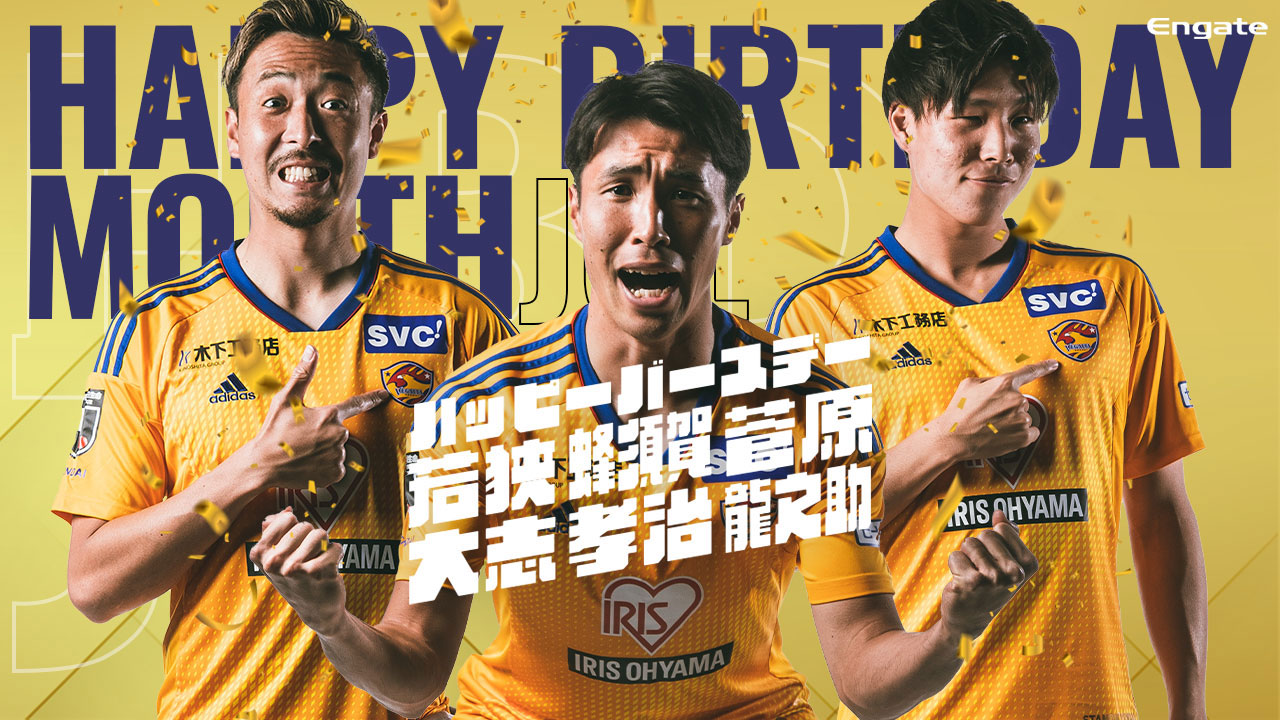 7月はDF 4 蜂須賀 孝治 (20日/33歳)、DF 5 若狭 大志(24日/34歳)、FW 28 菅原 龍之助 (28日/23歳)選手の誕生月間です。