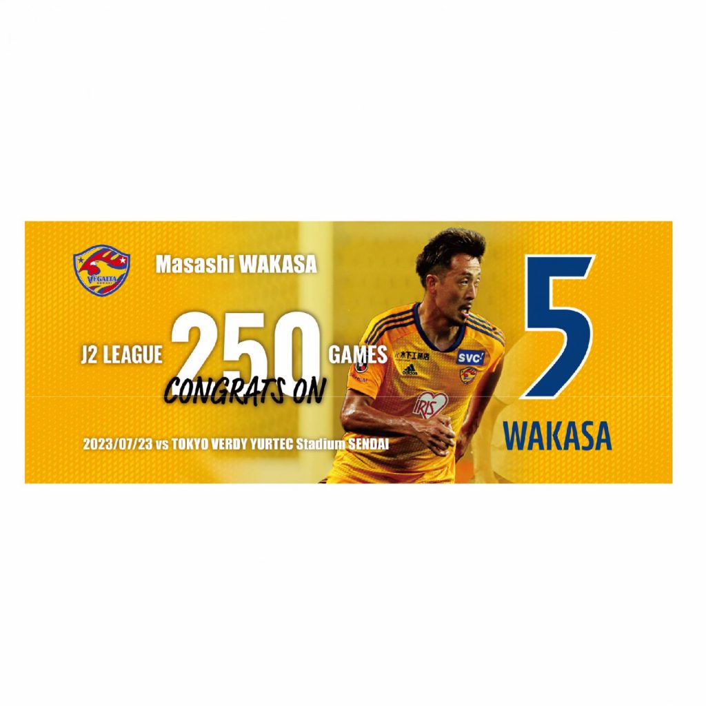 2023年7月23日(日)東京V戦にて、若狭大志選手がJ2リーグ通算250試合出場を達成いたしました。