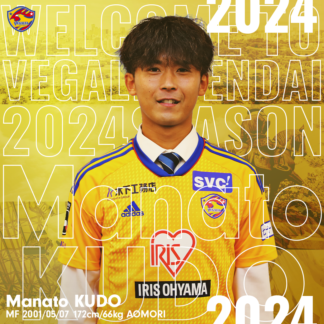 2024年シーズンから加入することになりました工藤真人です。ユース時代にお世話になったベガルタ仙台でプロサッカー選手としてのキャリアをスタートすることができ、とてもうれしく思います。自分の左足でチームを勝利に導き、ユアテックスタジアム仙台でサポーターのみなさんと喜びを分かち合えるようにがんばります。