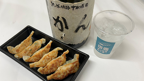 生ビール、日本酒、ハイボールと当店オリジナルの餃子をセット価格で販売します。