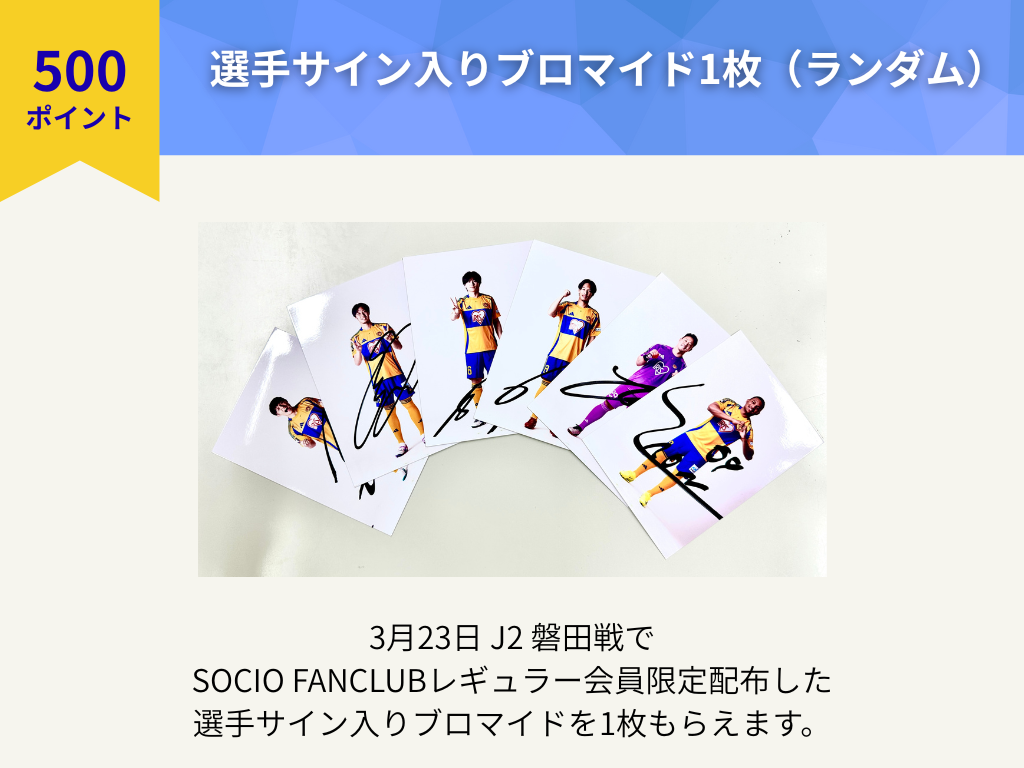 ホームゲーム開催時、SOCIO FANCLUBブースにて、ICカード会員証もしくは「Club J.LEAGUE」のアプリ会員証をご提示のうえ、上記特典と交換いただけます。