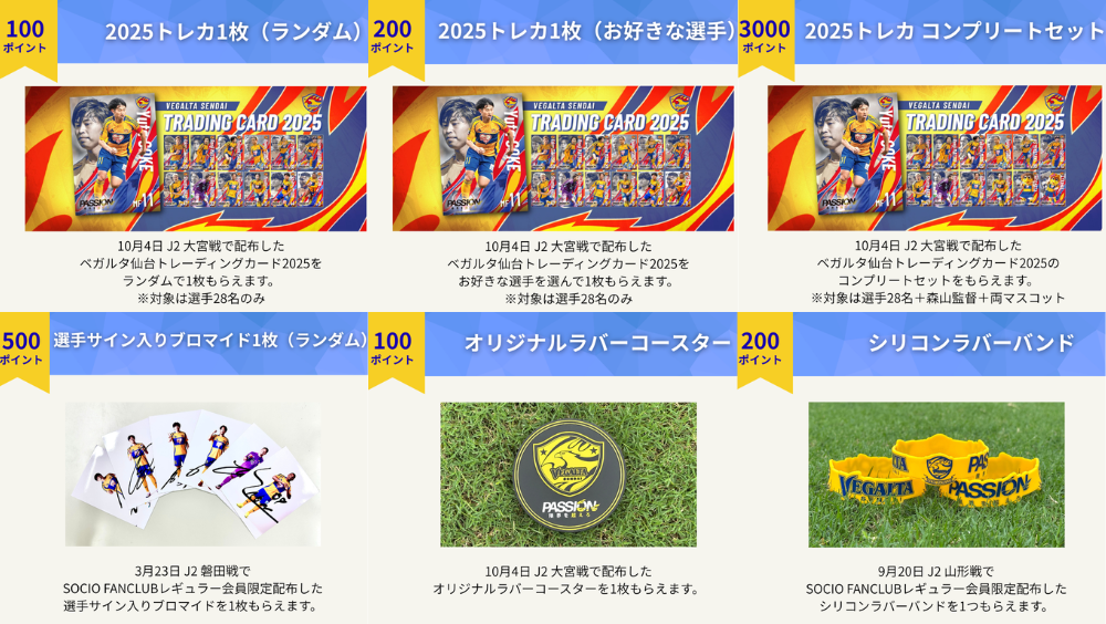【SOCIO FANCLUB】ベガルタポイント交換特典 追加のお知らせ