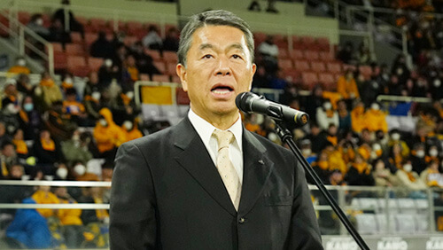 結果はたいへん惜しいところ、残念な結果でしたが、前につながる結果であったと思っております。オフシーズンの間に体を鍛え、技を磨き、チームを強くしていただきまして、われわれサポーターの夢でありますJ1昇格を必ず成し遂げていただきたく思います。