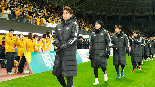 この数日間、ずっとサポーターのみなさんが寒い中、夜遅くまで準備をしてくれていたことも知っています。今日の選手入場のときは涙があふれ出ました。その思いを選手たちは100%で表現してくれたと思います。ただ、力及ばず、本当に、みなさんの声援に応えることができなかったこと、それが、その思いが強いだけにこんなにショックなことはありません。
