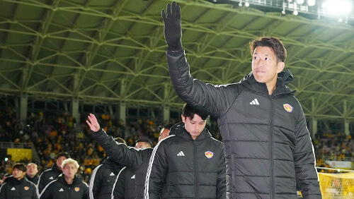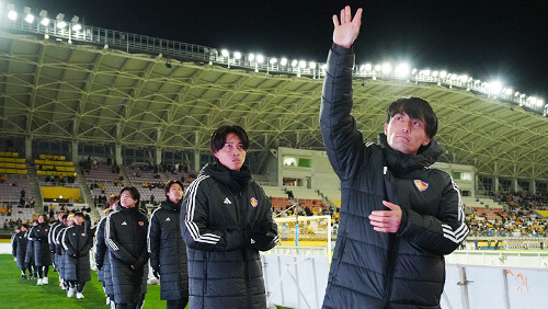 2025シーズンもホームそしてアウェーゲームでのみなさまの温かく熱い応援、誠にありがとうございました。シーズン最終節までJ1昇格を目指して戦ってまいりましたが、力及ばず、目標を達成することができず、厳しい結果となりました。受け止め、クラブはJ1昇格に向けて進んでまいります。