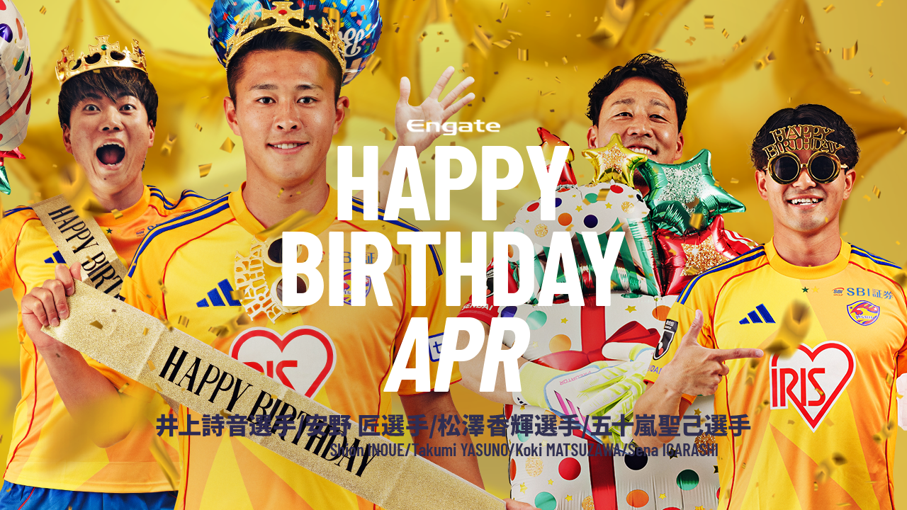 4月は、GK 29 松澤香輝(3日/34歳)、FW 40 安野匠(8日/20歳)、DF 2 五十嵐聖己(13日/24歳)、DF 44 井上詩音(25日/26歳)、4選手の誕生月間です。