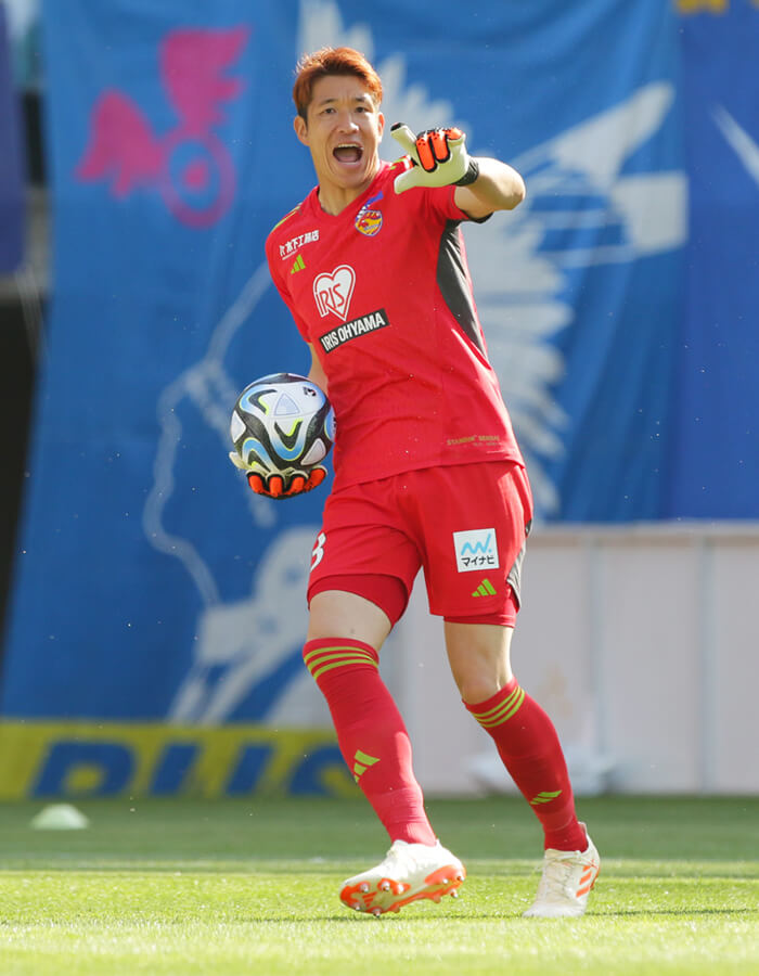 決意とともに、2023シーズンの仙台に加入。近年苦しんできたけがから回復し、開幕戦からピッチに立った。以来、堅実に相手のシュートコースをふさぐセーブに、こぼれ球をいち早くおさえてマイボールにする反応の速さ、そして味方を動かすコーチング。国内外で積んできた経験を生かすだけでなく、新たに挑戦するJ2の場で重要とする「ここで絶対に厳しくいかなければいけない部分での強さ」を意識したプレーを表現している。