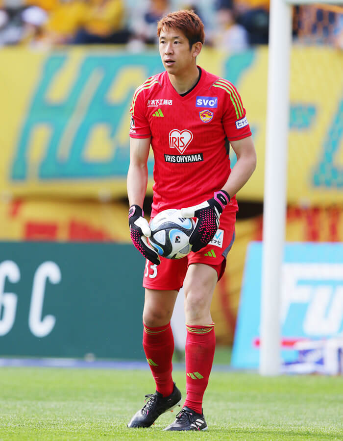 決意とともに、2023シーズンの仙台に加入。近年苦しんできたけがから回復し、開幕戦からピッチに立った。以来、堅実に相手のシュートコースをふさぐセーブに、こぼれ球をいち早くおさえてマイボールにする反応の速さ、そして味方を動かすコーチング。国内外で積んできた経験を生かすだけでなく、新たに挑戦するJ2の場で重要とする「ここで絶対に厳しくいかなければいけない部分での強さ」を意識したプレーを表現している。